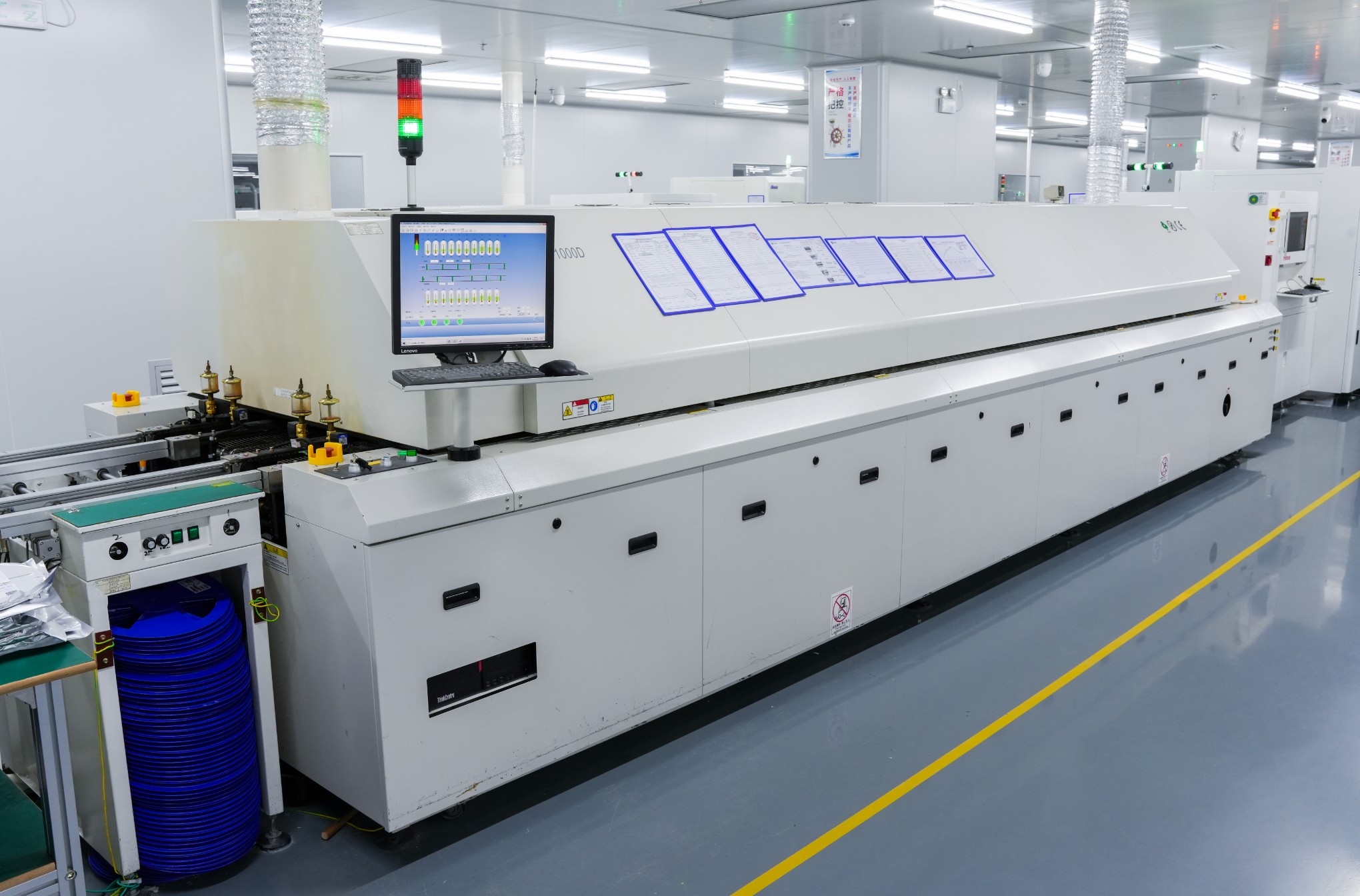 - 回流焊:元件贴装完成后,PCB会被送入回流焊。回流焊通过控制温度曲线加热PCB,使焊膏熔化并形成永久焊接接头。温度曲线的精确控制至关重要,以避免对敏感元件造成热损伤,同时确保焊接的充分性和焊点形成。